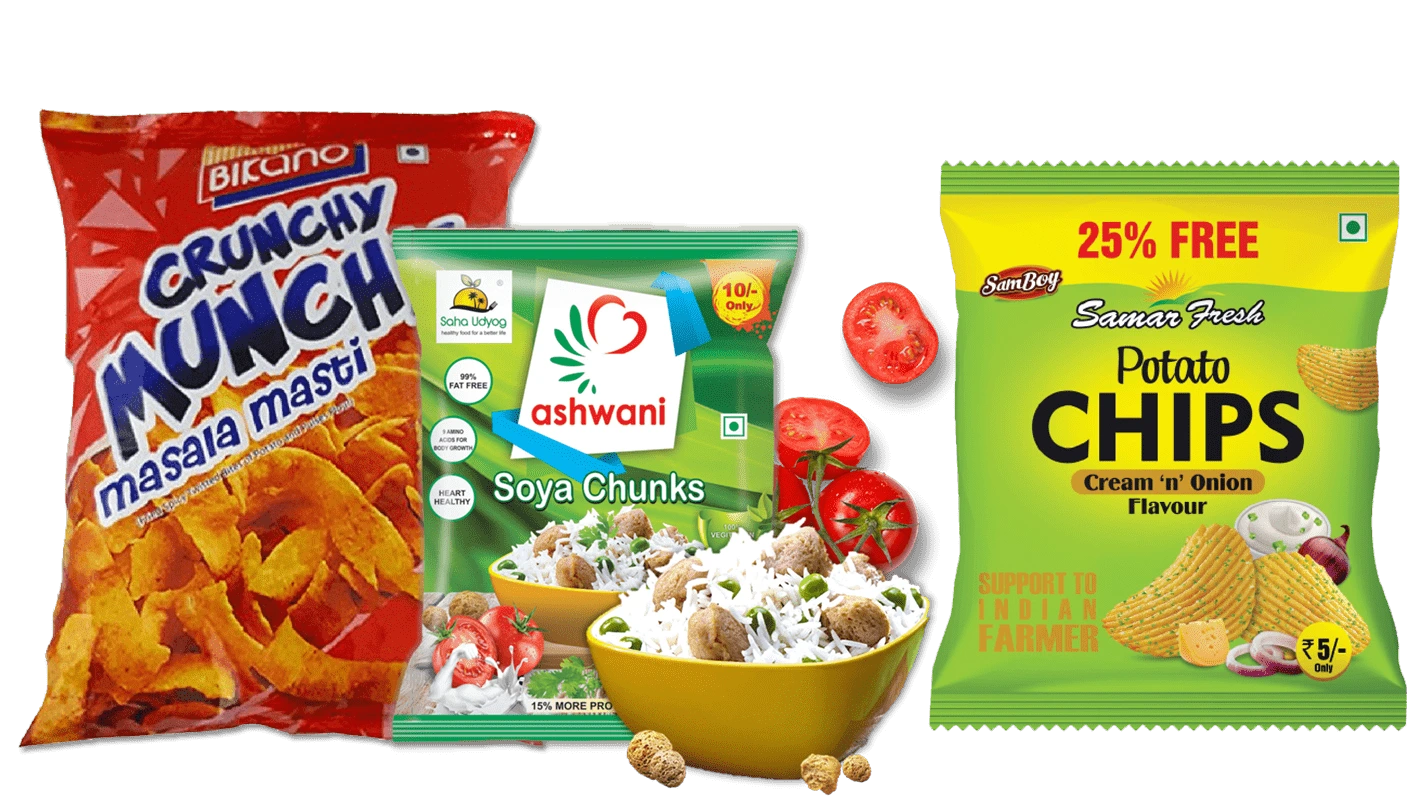 Chips, Dry Fruits, Namkeen, Spices, Seeds, Vegetables etc.