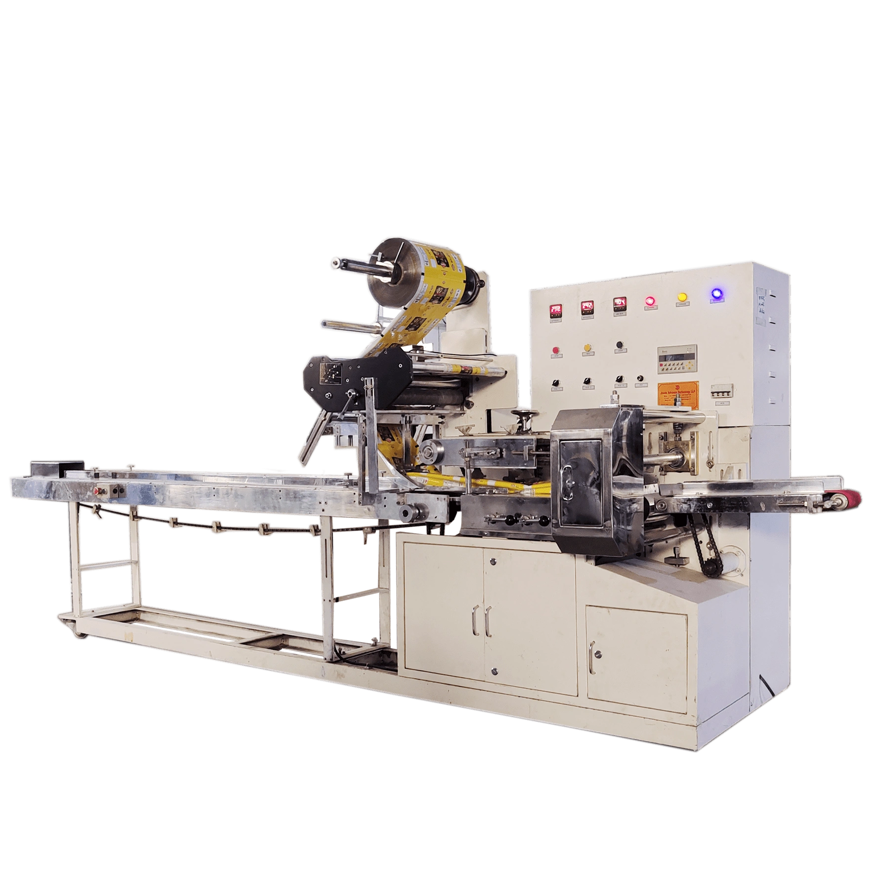 JAT-308 is a Horizontal Flow Wrape Pillopack Machine which, meticulously pillow packs Biscuit, Chocolate Bar, Noodles, Cycle Tube, Gauze, Bearing, Maggi, Sataining Towels, Scotch Bar, Gur, Cake, Tray Pack items & Electronic items etc. It is manufactured using an optimised grade of components following ultra-modern technology. Since it is fabricated to deliver pillow type of packaging solutions, the machine can be employed as a Family Pack Machine.