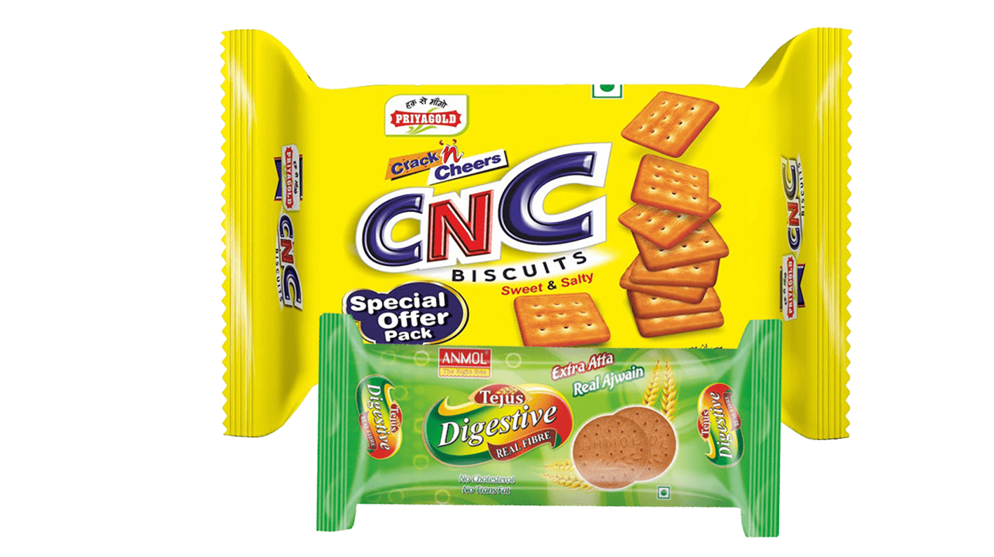 One-edge Biscuit Packaging Machine with Dual Feeder for 50gm, 75gm & 100gm